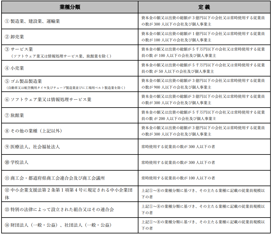 業種はほぼ全業種申請が出来ます